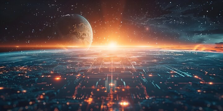 Glowing sphere in a cosmic landscape for fantasy and science fiction designs