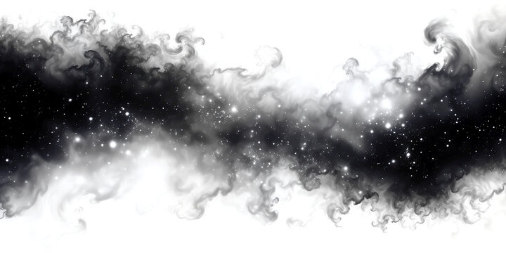 captivating swirl of vibrant blue smoke adorned with shimmering starry particles and glowing glitter. The ethereal mist blends with hints of blue vapor stardust, all set against a deep black backd