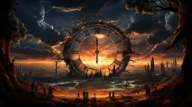 Giant transparent clock with dramatic light backdrop