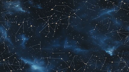 Abstract background in midnight blue with faint constellations and glowing starburst patterns creating a cosmic vibe