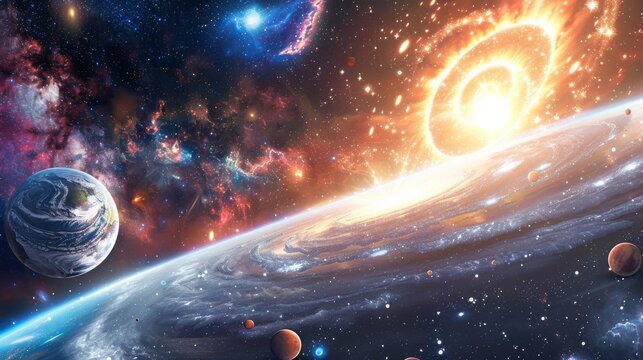 Cosmic voyage through planets with nebulae background, suitable for science, astronomy presentations