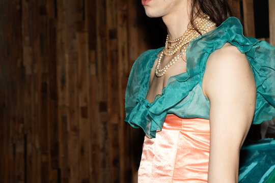 Androgynous latin man at costume party