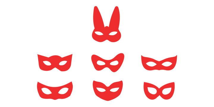 Vector illustration of various black silhouette masks for a masquerade ball or costume party adding an air of mystery and intrigue to any festive occasion