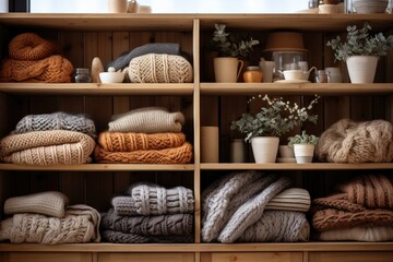people, season and leisure concept - close up of woman in warm sweater reading book at home