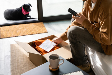 Smiling man and Indian woman exchanging touch while packing items at home, with open black suitcase