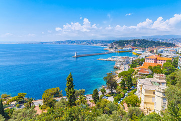 Amazing view of luxury resort Nice on French Riviera at Mediterranean Sea. Nice is famous and popular travel destination and summer recreation spot on Cote d'Azur, France.