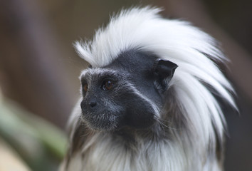 Portrait of cotton-top tamarin (Saguinus oedipus) of South America