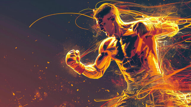 Boxer's glove midstrike boxing ring action shot athletic arena dynamic perspective counterattack technique