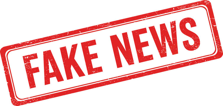 Red stamp graphic declaring fake news distortion propaganda misinformation falsehood social media isolated on transparent background