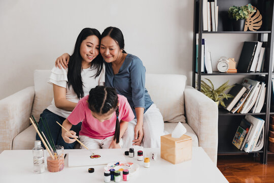 Celebrating family moments with an LGBTQ couple and their adopted child engaged in creative activities at home