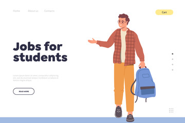 Jobs for student landing page design template with happy young male pupil making career choice