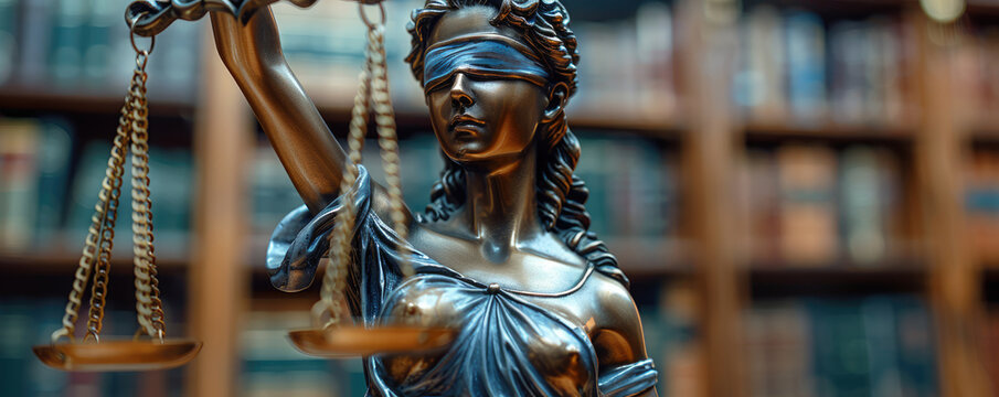 Statue of justice goddess Themis with blindfold and scales