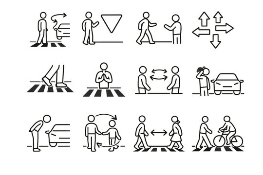 Icon to crosswalk step urban arrow awareness courtesy flow coexistence calm vector
