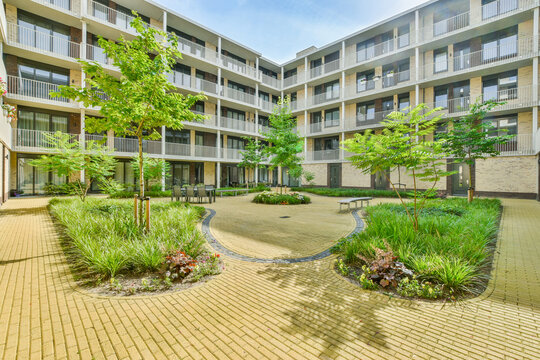 Inner courtyard of apartment building in residential district