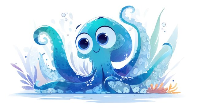 A charming 2d illustration featuring a playful cartoon octopus set against a crisp white backdrop This delightful artwork serves as a perfect fit for a children s book cover capturing the e