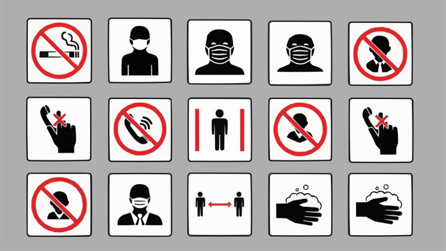 Line drawing illustration of a man coughing with four additional views of the same action in various stages, on a white background.