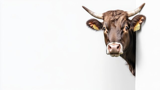 watercolor portrait of a cow, spots of liquid paint isolated on a white background