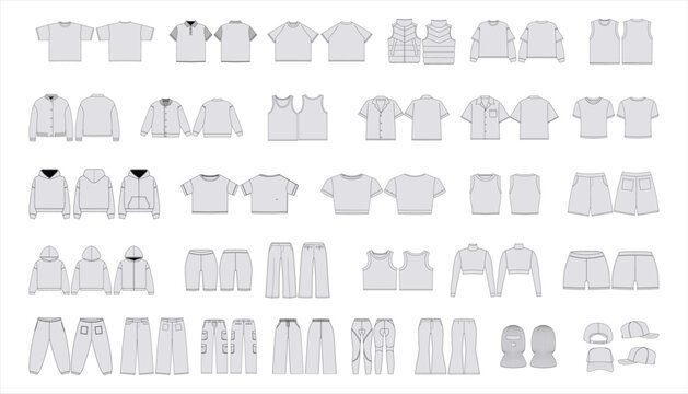 Set of Clothing Mockup Template - Apparel Vector Mockups Bundle Tech Pack Template Streetwear Mockups Clothing Brand Streetwear Techpack Fashion