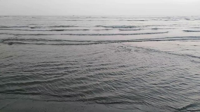 Cox’s Bazar sea beach landscape. Water waves in sea beach video footage. World longest sea beach in Bangladesh.