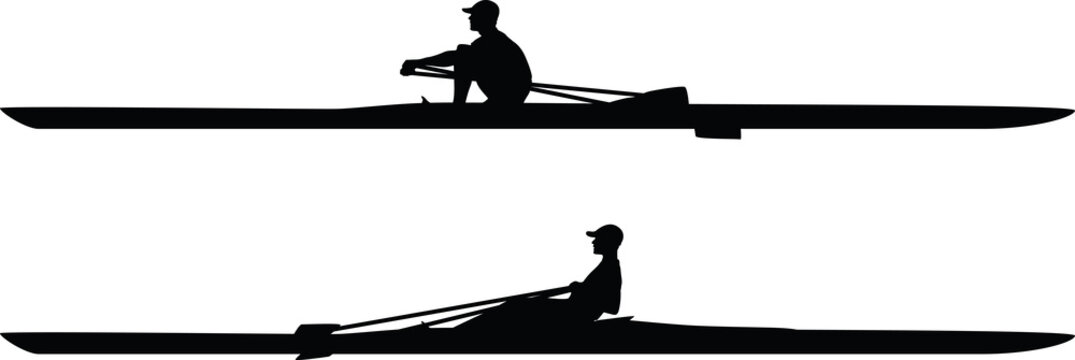 Rowing silhouette vector set, single scull, quad scull, eight with coxswain, black rowing icons, water sport illustration, team rowing graphic
