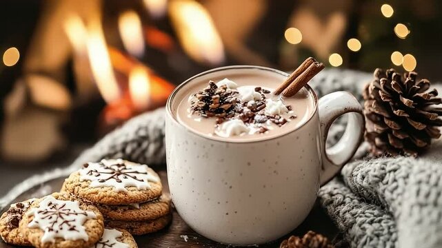 Cozy christmas by the fireplace with warm socks