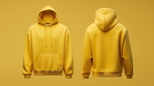 Blank yellow hoodie mockup, front and back view, 3d rendering