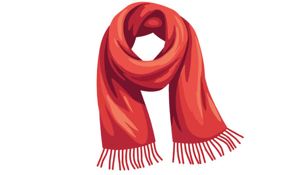 Bright red knitted scarf in simple shape, hand-painted in soft watercolor style with warm texture and cozy seasonal autumn feeling. Vector illustration.