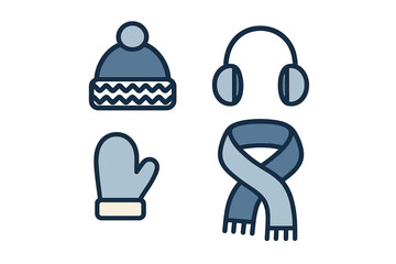 Warm winter apparel accessories set including knitted hat, protective earmuffs, cozy mitten, and stylish scarf