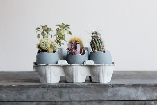 Fresh and boiled eggs. Cartoon broken eggs with cracked eggshell, in cardboard box and egg half with yolk vector illustration