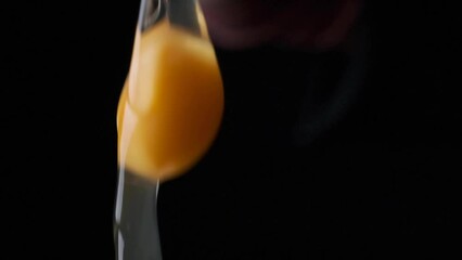 cracking egg egg yolk falling slow motion close up black background