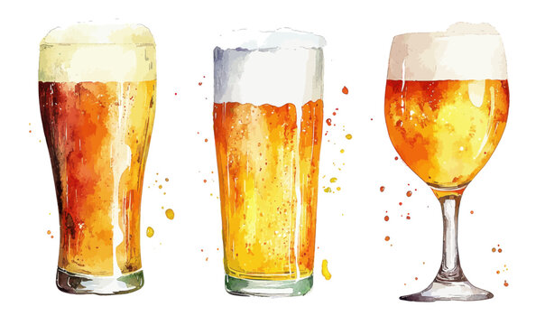 Illustration of beer bottle and glass with blank label for branding or advertising