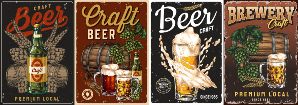 Explore the vibrant hues and textures of craft beer in this stunning arrangement of five glasses, each showcasing a unique style and character that beer lovers cherish.