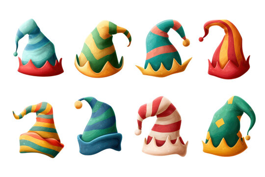 Colorful hats with various patterns displayed in rows, showcasing different styles and designs for festive occasions and celebrations
