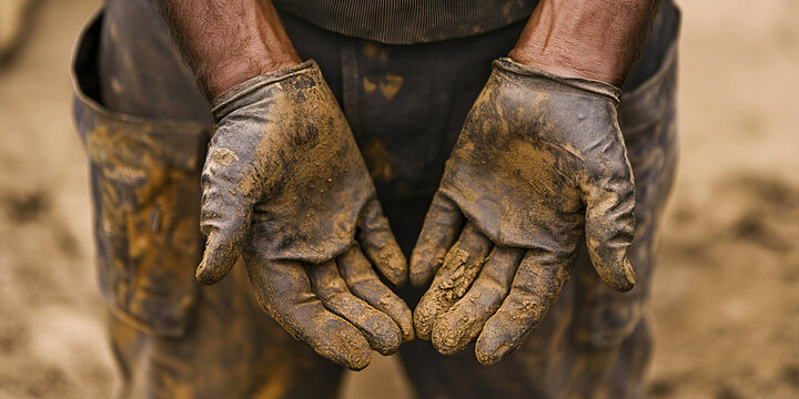Skillful Tradesperson: A man in workman's clothes, his hands dirty from labor and his expression one of satisfaction.