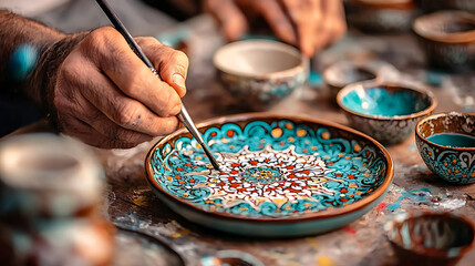 Hands painting ceramic bowl, promoting artisan pottery workshops
