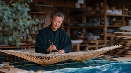 A group of skilled craftsmen meticulously crafting handmade products in a workshop. Generative Ai.