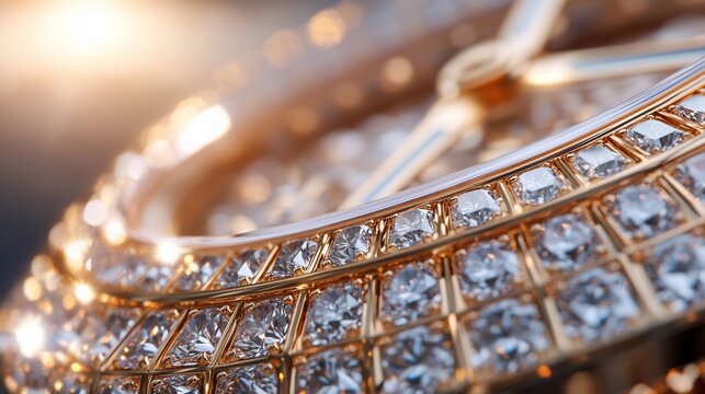 Diamond-encrusted watch, close-up. Luxury jewelry, advertising