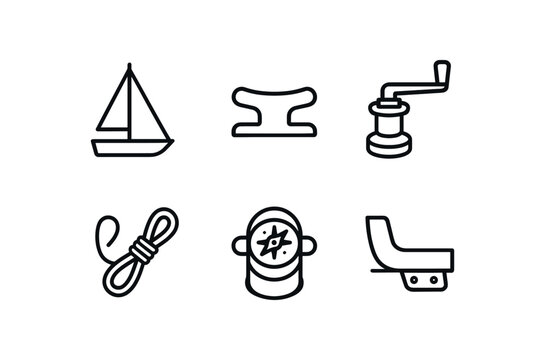 straight perfect stroke icon mono icons style isolated sailing mast rigging sailing cleat hook sailing winch handle crank sailing sail reefing sailing compass binnacle sailing hull flan