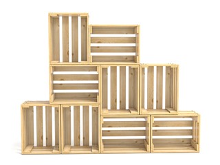 Empty wooden crates arranged 3D
