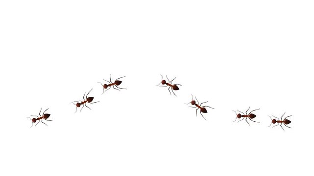 Ant insects randomly crawling green screen white Background animation. Ant trail column. insect silhouettes trip. Teamwork, hard work. Set line target sport