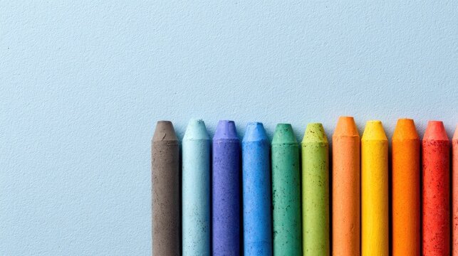 Colorful crayons in a row for creative art and design concepts