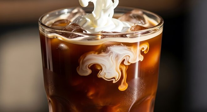 Creamy iced coffee splash in tall glass