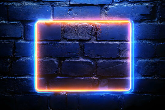 A vibrant neon frame glowing against a textured brick wall, perfect for advertisements and creative displays.