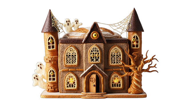 Spooky gingerbread haunted house on transparent background