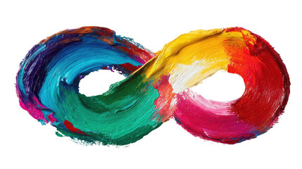 Thick paint strokes in vibrant colors create an infinity loop symbol, representing limitless possibilities and creative expression, against a transparent background