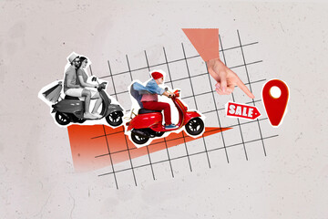 Bicycle repair service promotional collage with skilled technicians