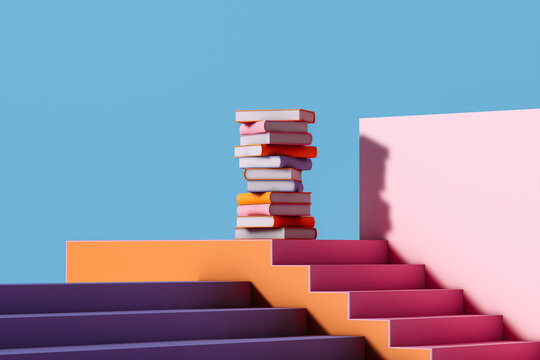 Educational posters. Back to School. Books, notebook, light bulb, fountain pen, pencils. Elements and objects on school themes, simple flat background.
