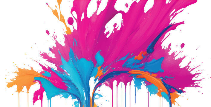 Dynamic Abstract Watercolor Paint Burst with Vibrant Color Splashes on Clean White Background