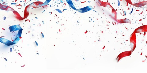 Colorful streamers and confetti create a vibrant and celebratory design on white