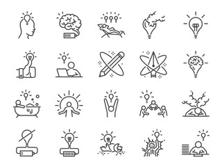 Creativity icon set. Included icons as Inspiration, idea, brain, innovation, imagination and more.